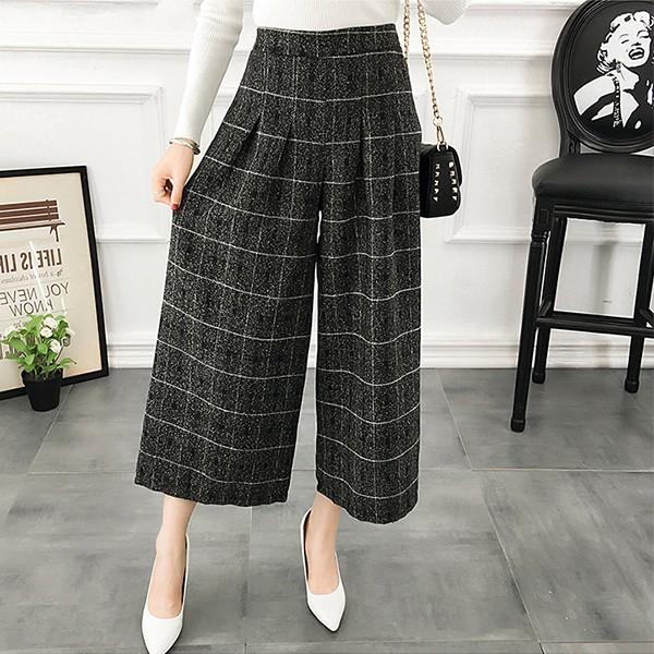 楽天市場 メール便送料無料 ワイドパンツ レディース 秋冬 パンツ 大人 冬 ガウチョパンツ 七分丈 ストライプ柄 チェック柄 ゆったり クロップド丈 スカーチョ ワイド七分丈パンツ ガウチョ パンツ ツイード 春 夏 春夏 秋 ブラック 黒 グレー セレクトショップsoul